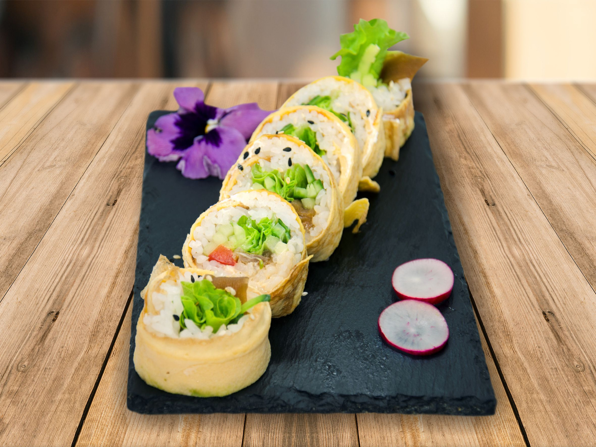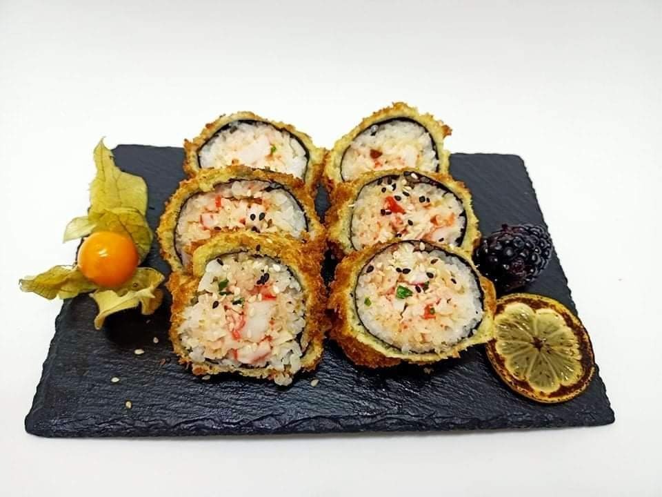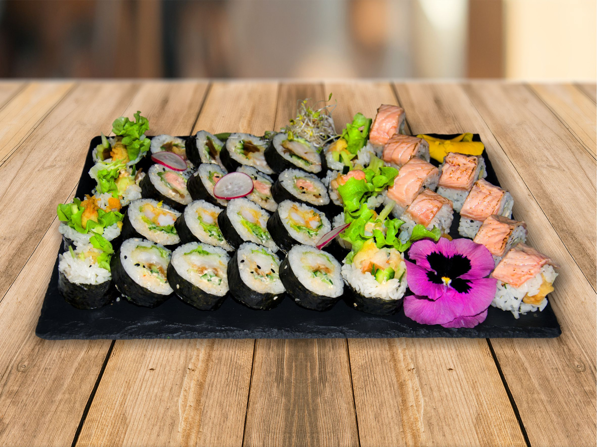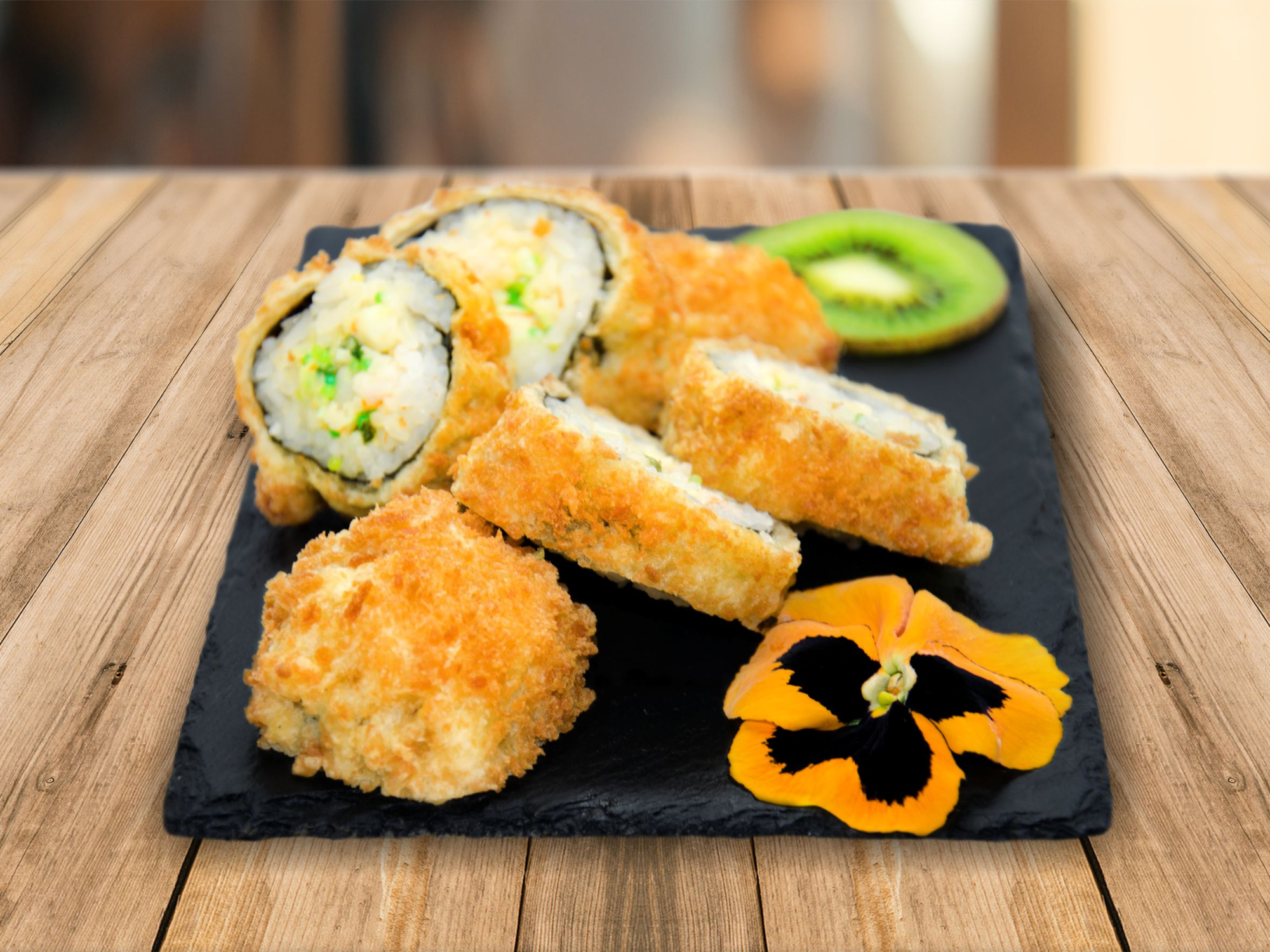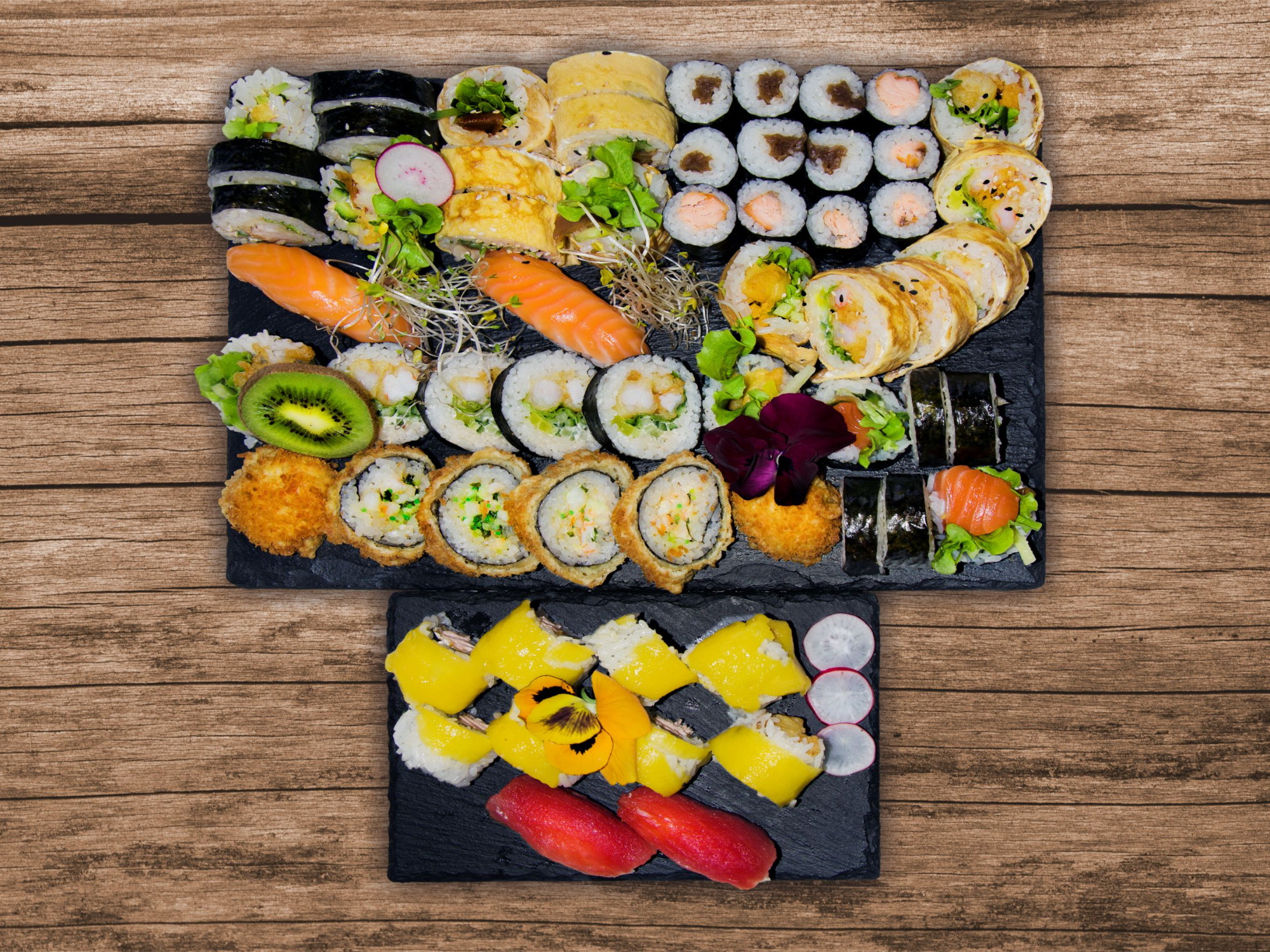 Kulka ryżu przykryta slicem ryby, owocem morza, warzywem lub owocem. Podawane po 2 szt